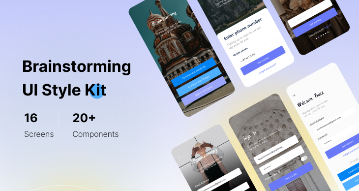 Brainstorming is an amazing free UI style kit with huge mobile screens and components library. It has a trendy design that you can use for inspiration for your app with super quality design.