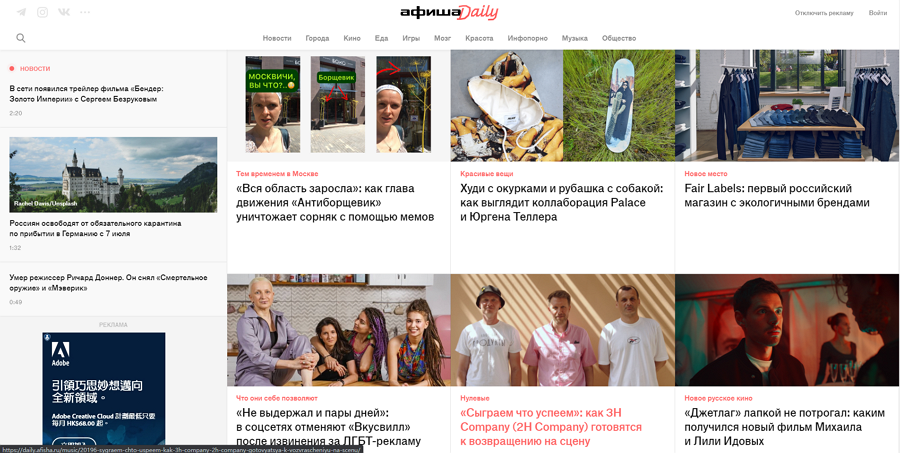 Афиша Daily is a news website that also uses grid layouts to present different news. A four-column grid layout presents all news in a nice readable order. This website is definitely a good example of arranging many different pieces of content in columns, and is worth following if you are also designing a news website.