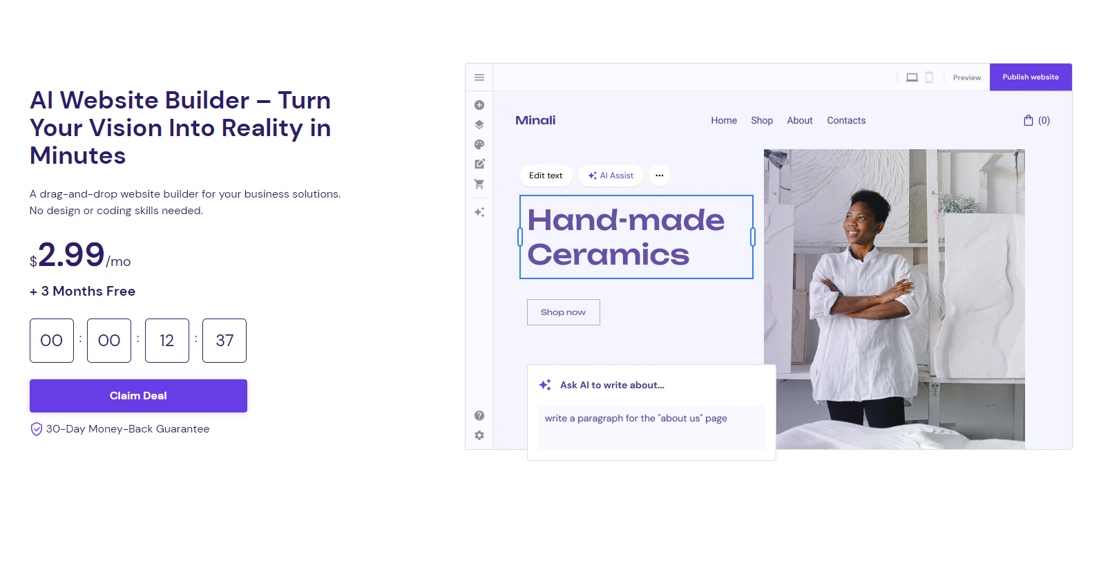 As you customize your site, the AI system adapts, learning from your choices and anticipating your website needs.